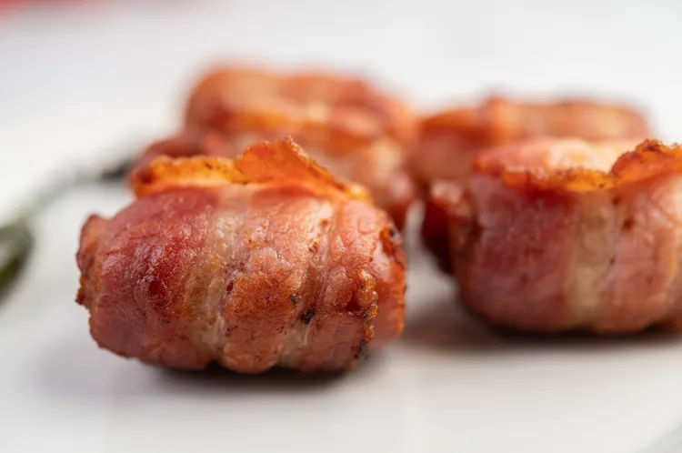- Use kitchen twine to securely tie the bacon around the pork fillet if needed.