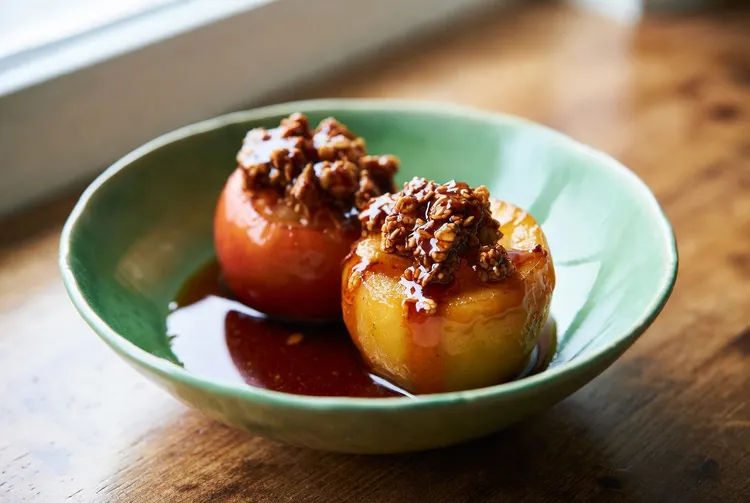 Baked apples with maple syrup and granola are a delightful dessert option that perfectly blends sweetness and warmth. This recipe transforms a few simple ingredients into a comforting dish that's perfect for autumn evenings or as a scrumptious end to any meal. The combination of tender baked apples, rich maple syrup, and crunchy granola creates a taste and texture sensation that's sure to impress.