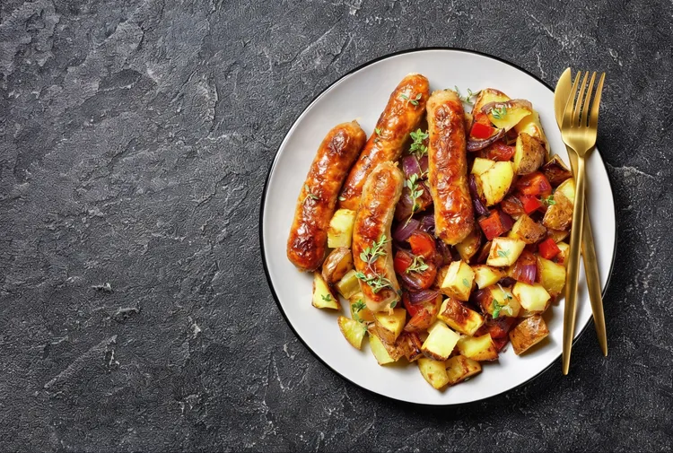 Storage: Leftovers keep for 3 days refrigerated. Reheat in a 180°C oven for 10 minutes or in a dry pan over medium heat. Do not microwave - the sausage texture degrades.