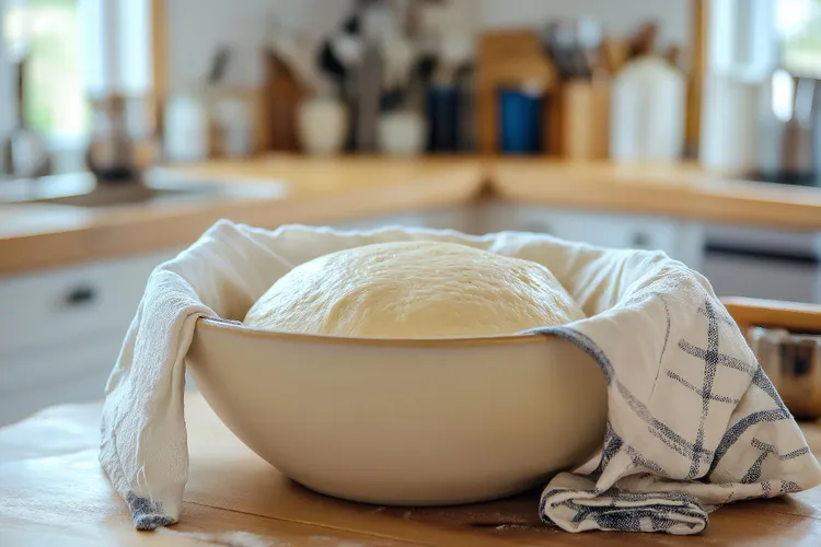 A clean, damp kitchen towel laid over your bowl works perfectly. Plastic wrap or a shower cap works even better because it creates a fully sealed environment.