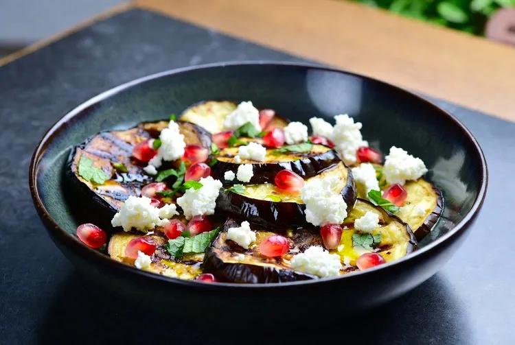 Chargrilled eggplants with feta is a delightful and healthy dish that combines smoky flavors with fresh and tangy accents. This recipe is perfect for a quick meal or as a flavorful side dish. With the addition of pomegranate and spearmint, it offers a refreshing twist that's perfect for any table.