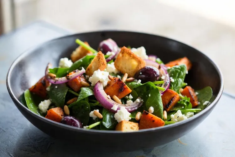 Your Chargrilled Pumpkin, Feta, and Spinach Salad is now ready to be served. The rich flavors of perfectly grilled pumpkin, creamy feta, and nutritious spinach make for a satisfying and delectable meal. Enjoy this healthy and vibrant salad as a standalone dish or as a complement to your main course. Bon appétit!