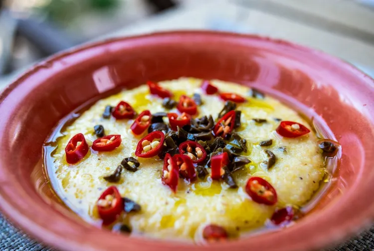 Chilli and olive polenta is a culinary delight that balances warmth from the chili peppers with the rich, savory notes from the olives. It's a simple yet satisfying dish that pairs wonderfully with a variety of proteins or can stand alone as a hearty vegetarian option. Enjoy your meal and relish the bold flavors this dish has to offer!