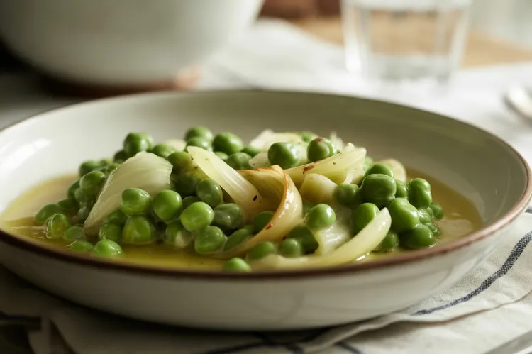 Bake the Pea and Onion Casserole in a preheated oven at 350°F (175°C) for 25-30 minutes, or until the top is slightly golden and the dish is heated through.