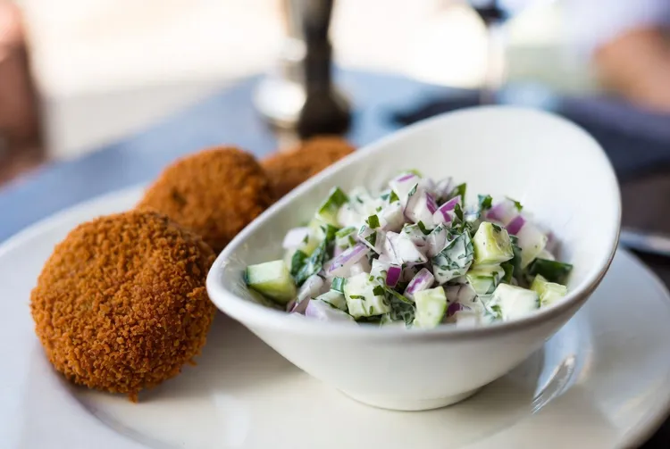 - Serve the fish cakes warm, with a generous portion of cucumber salad on the side.