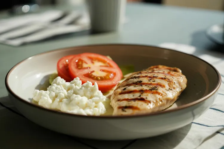 Grilled chicken with tomato and cottage cheese is a simple yet delicious dish that combines the savory flavors of grilled chicken with the fresh taste of tomatoes and the creamy texture of cottage cheese. This recipe is not only easy to prepare but is also nutritious, making it an excellent choice for a healthy meal.