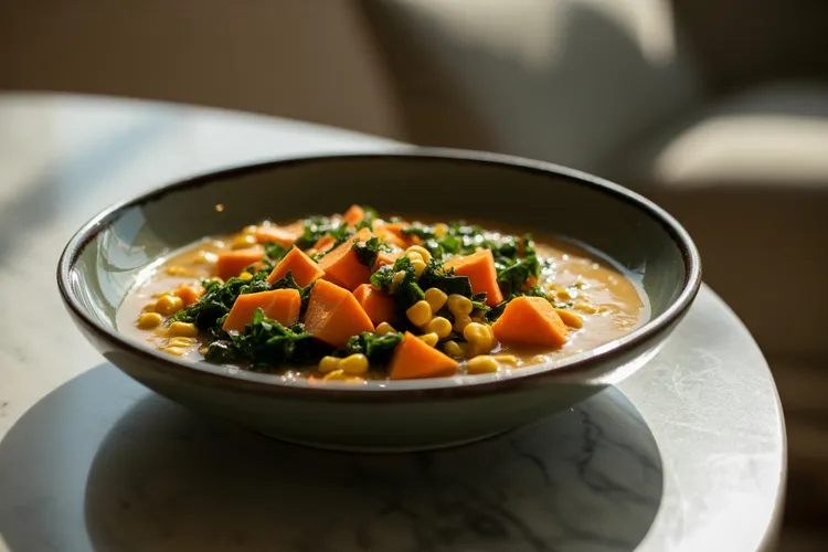 There you have it, a wholesome and flavorful Sweet Potato, Kale, and Corn Chowder ready to serve! This rich and satisfying chowder is sure to warm you up from the inside out. Enjoy it with crusty bread or as a standalone meal, and relish in the comforting flavors of this nourishing dish.