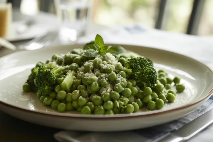This minted peas with broccoli dish is a quick and easy way to enjoy a nutritious meal packed with a refreshing flavor profile. The bright combination of peas, broccoli, mint, and lemon, complemented by the savory parmesan cheese, makes it a delightful dish that is sure to become a favorite in your kitchen.