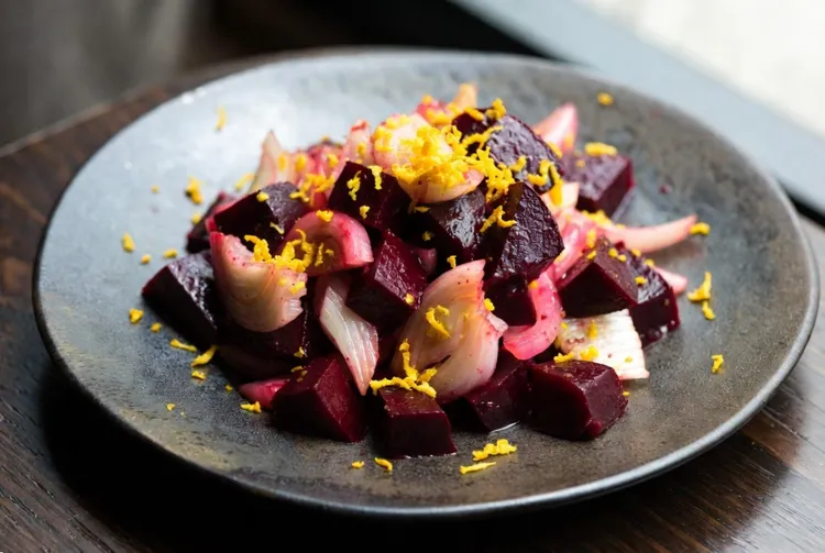 - When peeling and slicing the beets, consider wearing gloves to avoid staining your hands.