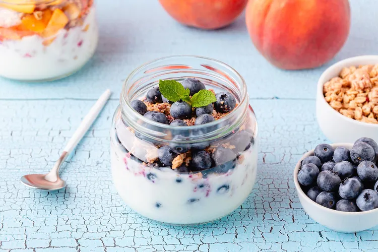 - For a more visually appealing parfait, layer the yogurt, granola, and fruits in a clear glass or jar.