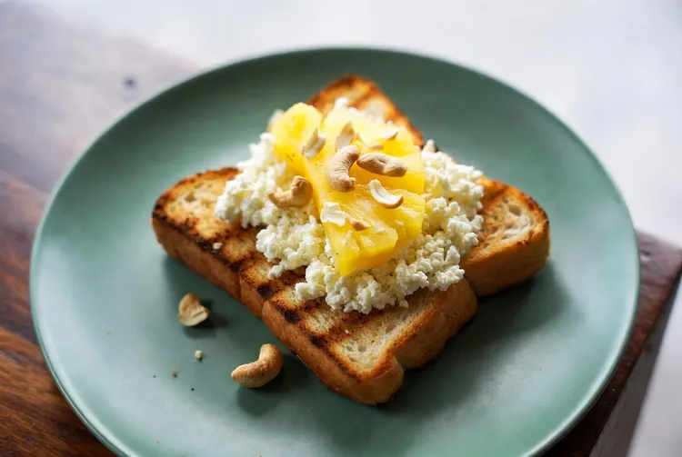 In just a few minutes, you've created a delicious and nutritious treat that's perfect for kick-starting your day or enjoying a quick snack. Pineapple toast with cottage cheese and cashews is an easy-to-make recipe that delivers a delightful combination of flavors and textures.