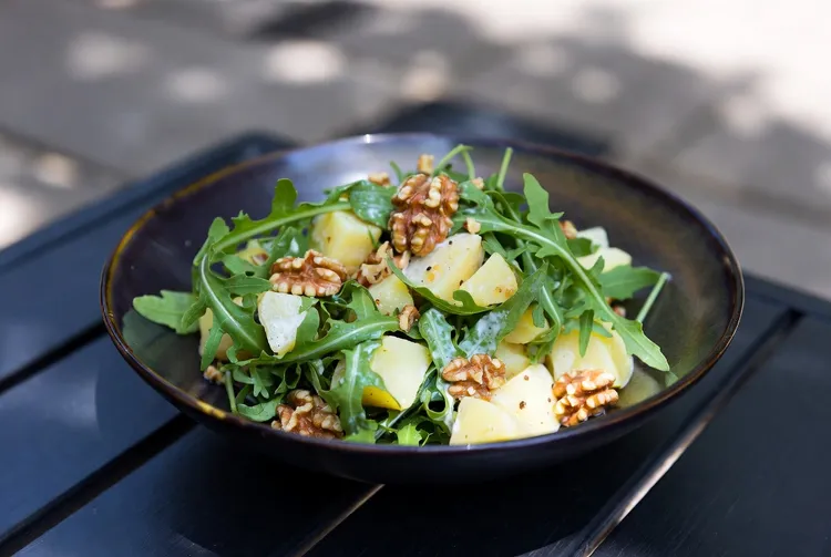 This delicious potato and rocket salad with toasted walnuts is a perfect blend of flavors and textures. The earthiness of potatoes combined with the peppery taste of rocket, the crunch of toasted walnuts, and the tangy dressing makes this salad a delightful and healthy option for any meal.