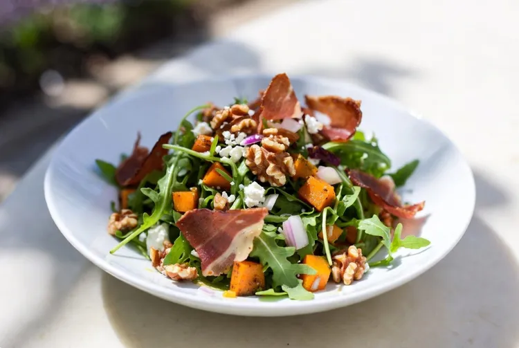 This Prosciutto, Pumpkin & Walnut Salad is a delightful and hearty dish that combines the sweetness of roasted pumpkin, the salty and savory flavors of prosciutto and feta cheese, and the crunch of walnuts. With a bed of fresh arugula and a honey-vinegar dressing, this salad is perfect for a nutritious and satisfying meal.