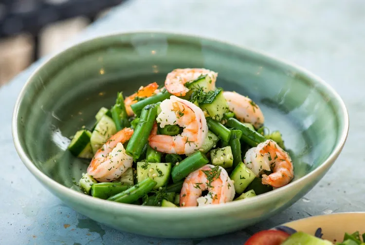 This Shrimp, Cucumber and Bean Starter is a refreshing and light appetizer that's perfect for any occasion. Combining the succulent taste of shrimp with the crispness of cucumbers and the fresh flavor of green beans, this dish is dressed with a tangy lemon-dill mustard dressing. It's not only delicious but also healthy, making it an excellent option for those who seek a nutritious yet flavorful start to their meal.
