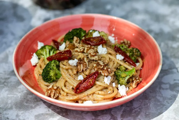 Skillet pasta with sun-dried tomatoes, walnuts, and feta is a flavorful and nutritious dish that's perfect for weeknight dinners. It's a delightful fusion of savory, tangy, and crunchy elements, making it a satisfying meal for both vegetarians and pasta lovers. This recipe is not only easy to make but also packed with wholesome ingredients that offer a balanced combination of protein, fiber, and healthy fats.