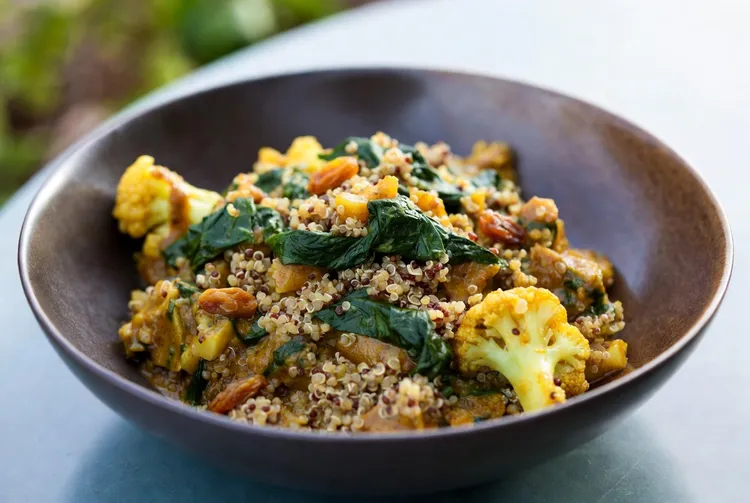Curried Quinoa with Cauliflower, Greens & Raisins is a flavorful, easy-to-make dish that is both satisfying and wholesome. The blend of spices and the combination of textures from quinoa, cauliflower, and spinach will surely delight your taste buds. This dish not only offers a burst of flavor but also packs in a range of nutrients that make it a perfect choice for a balanced meal. Enjoy this dish as a standalone meal or pair it with your favorite protein for an even heartier option.