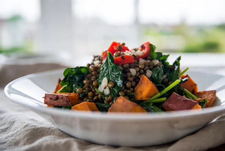 This Sweet Potato & Lentil Salad with Spinach and Red Pepper is a nutritious and delicious recipe that's perfect for lunch or dinner. Packed with vitamins, fiber, and protein, it's an excellent option for a hearty and healthy meal. The combination of sweet potatoes, lentils, fresh greens, and a tangy dressing offers an exciting blend of flavors and textures.