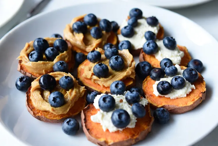 Sweet potato toast with peanut butter, ricotta, and blueberries is a delicious and nutritious alternative to traditional bread-based toast. This recipe combines the natural sweetness of sweet potatoes with the creaminess of ricotta cheese and the rich flavor of peanut butter, topped off with juicy blueberries for a burst of freshness. It's a perfect option for breakfast, a snack, or even a light meal.