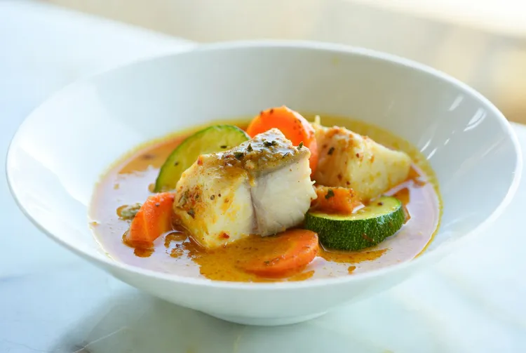 Thai-style curried fish is a harmonious blend of colorful vegetables, succulent white fish, and rich coconut milk, all brought together with aromatic curry paste. This dish is a delightful way to experience the vivid flavors and vibrant culture of Thailand from the comfort of your own kitchen.