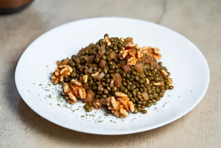 Warm lentil and walnut salad with thyme and garlic is a nutritious and delightful dish that combines the earthy flavors of lentils, the crunchiness of walnuts, and the aromatic touch of thyme and garlic. This hearty salad is perfect as a main course or a side dish, providing a balance of proteins, healthy fats, and vitamins.