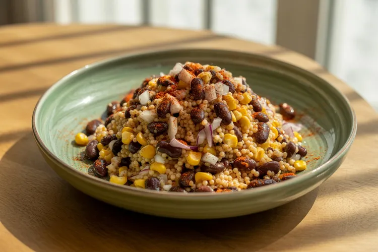 This Black Bean and Corn Couscous Salad is a vibrant and nutritious dish that combines the robust flavors of black beans, sweet corn, and aromatic spices with fluffy couscous. Perfect as a light meal or a side dish, it's not only delicious but also quick and easy to prepare.